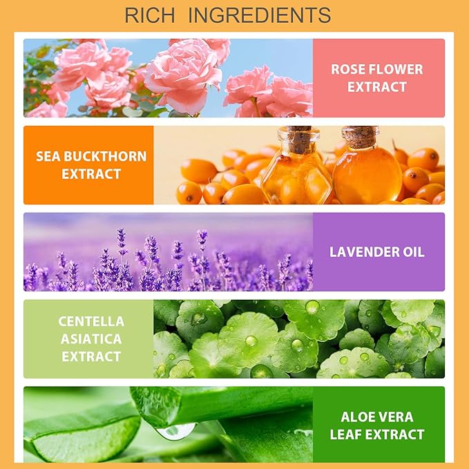 • 【Natural Ingredient】Formulated with lavender oil, sea buckthorn extract, roseflower extract, centella asiatica extract, aloe vera leaf extract. Maintain skin health and balance epidermal pH for healthier skin, enhance your skin’s glowing appearance