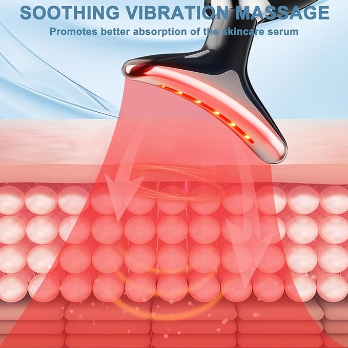 Facial and Neck Massager,Face Tool with 3 Colour Modes and Vibration,Facial Beauty Device for Skin Care (Black)