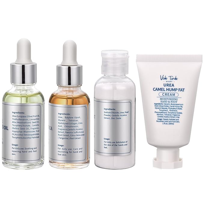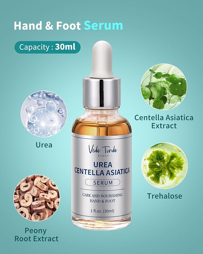 - Deep Cleansing, Soothing & Repairing: The natural mineral salt scrub with urea is used with a blend of essential oils enriched with tea tree oil to quickly soften calluses and rough skin, helping to gently exfoliate and remove dead skin while hydrating and providing essential nutrients to dry skin. After scrubbing, apply a few drops of the serum evenly to soothe and deeply moisturize cracked skin. Leaves our hands and feet feeling soft, smooth, comfortable and clean.