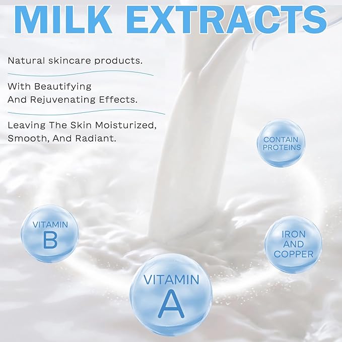 - Mild and Non-irritating: This facial care set contains milk extract, shea butter extract, hyaluronic acid, vitamins and a variety of mild skincare ingredients that penetrate deep into the skin to replenish the skin's essential nutrients and add moisture and radiance. It is non-greasy and non-irritating, and leaves a residue-free finish, so enjoy the nourishing benefits of the Milk Skin Care Sets.