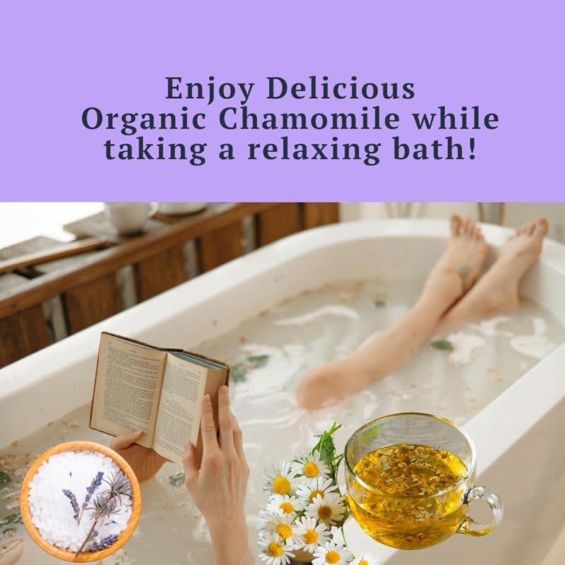 • ORGANIC CHAMOMILE TEA Sit back and enjoy our deliciously hand-blended organic loose tea! This caffeine-free will make the bath experience more enjoyable!