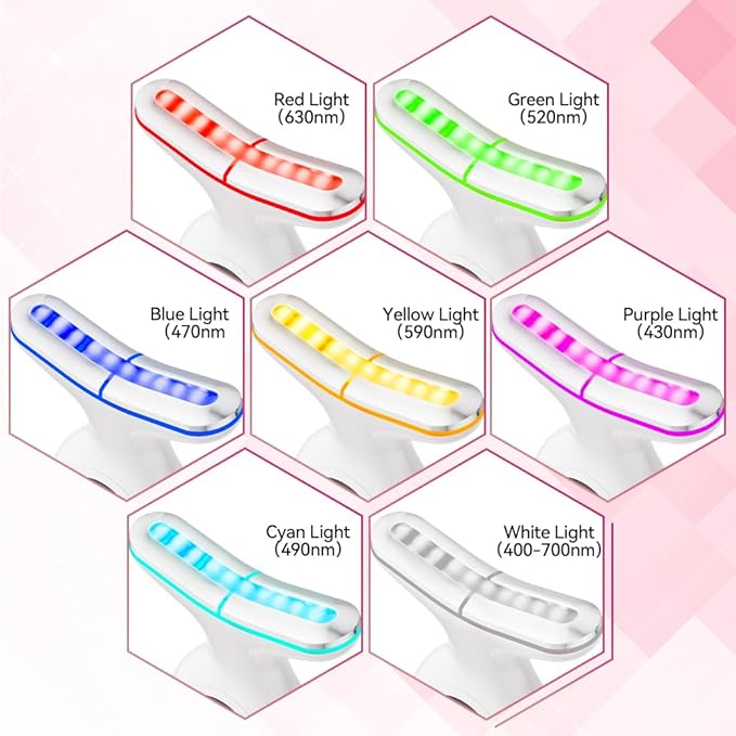 • 7-IN-1 Facial Massager: This versatile massager offers three modes and 7 colors, the left button can adjust the 7 colors, and the right button can adjust the three modes. Choose your preferred mode. For best results, cleanse your face and neck, then apply skincare products like serum or gel to keep your skin moisturized.