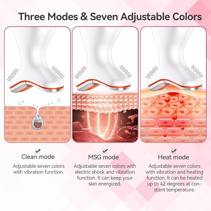 • The perfect skincare tool: Clean mode with vibration function. Hot mode with vibration heating function. MSG mode with vibration function