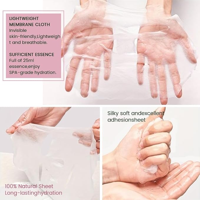 • FACIAL SKINCARE SHEET MASK:This premium women's skin care mask is silky smooth,moisturizing,refreshing and has increased efficacy and adhesion to block evaporation and lock in moisture for a hydrating effect that lasts all day