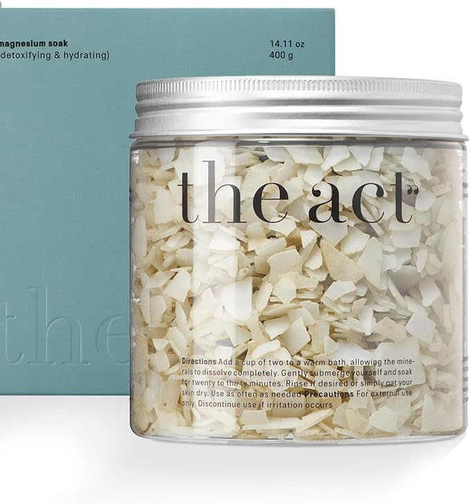 - Replenish Magnesium Levels with Ease: The Act magnesium flakes for soaking is a natural and effective way to restore magnesium levels through the skin. Regular soaking bath help calm the nervous system, promote restful sleep, and alleviate symptoms of premenstrual syndrome by reducing irritability and anxiety.