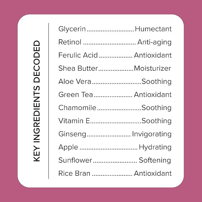 - RELAX & RESTORE – Non-Greasy Formula, Vegan, Cruelty-Free. Free From: Parabens, Drying Alcohols, Animal-Derived Ingredients, PEGs, Sulfates, Dyes, Triclosan, Talc, & Mineral Oil. Manufactured in our cGMP & MoCRA compliant facility in Chicago, USA. RETINOL BEGINNERS, please take care to test cream on a small area of skin, gradually phasing into your skincare routine, working up to twice daily as tolerated. If irritation occurs, reduce frequency. If irritation persists, discontinue use.