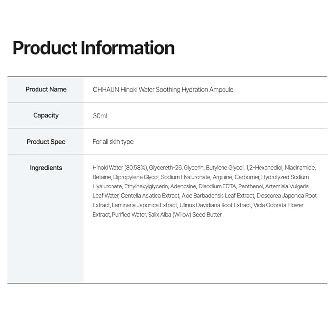 • Soothing & Hydrating 🌿 - Enriched with 80.58% Hinoki water, providing intense hydration and soothing effects for sensitive skin.