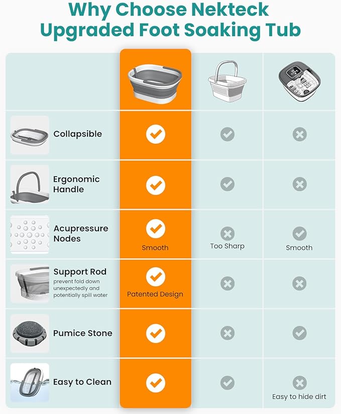Nekteck Foot Soaking Tub Collapsible Bucket for Foot Bath Soak Tub, Foot Basin Foot Soaker with 138 Acupressure Nodes and Pumice Stone for Feet Massager Pedicure Foot Spa, Gifts for Men Women Dad Mom
