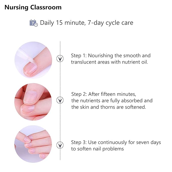 - 【Easy To Use】Cuticle oil can improve these problems: moisturize cuticles and nails, smooth out thorns, and soften dead skin. Recommended to follow the 15 minute daily and 7-day cycle care steps: Step 1: The cuticle oil is smooth and penetrates rough areas to obtain nourishment; Step 2: After fifteen minutes, the nutritional oil components are fully absorbed, and the peeling and prickling are softened; Step 3: Use continuously for more than seven days to soften nail problems.