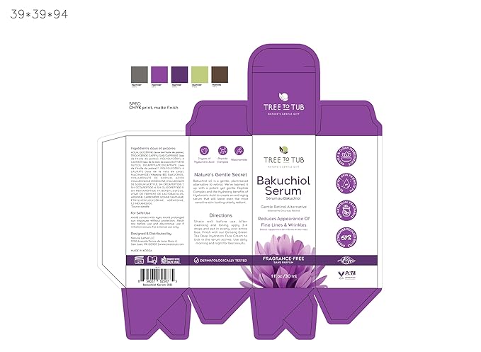 Tree To Tub Bakuchiol Face Serum - Gentle Hydrating Retinol Serum for Face with Hyaluronic Acid & Peptides for All Skin Types