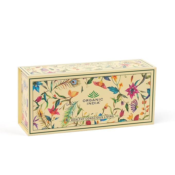 Organic India Tea Sampler Box Variety Pack - Tulsi Herbal Tea Gift Set, Hot Tea Assortment, Holy Basil, Ashwagandha, Turmeric Ginger, Sweet Rose, Original, Sleep, Masala Chai - 60 Tea Bags