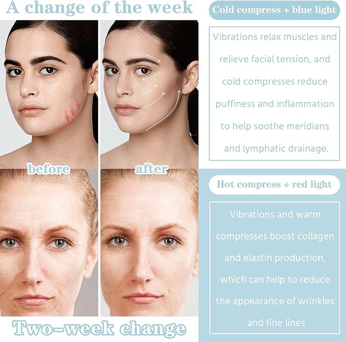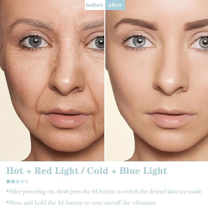- Multiple Modes Available - This face lift device offers multiple care modes for various skin needs. Mode 1 combines heat and red to boost circulation, soothe skin, and improve elasticity and brightness. Mode 2 uses ice and blue to shrink pores, relieve tension, and repair sensitive skin. Mode 3 uses MICRO and purple to tighten, lift, and deeply repair skin. Mode 4 combines heat, MICRO, and red for anti-aging, lifting, and firming. Vibration can be added to any mode for enhanced results.