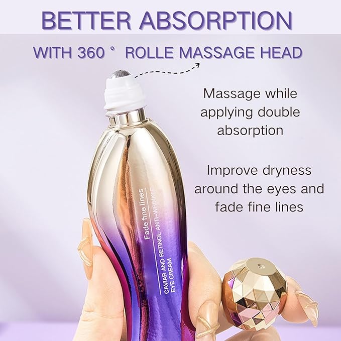 Eye Cream for Dark Circles and Puffiness - Retinol Eye Cream Anti Aging -Ey e Bags Treatment for Women - Caviar Eye Se rum for Wrinkles - Moisturizing under Eye Cream -Ey e Serum with 360°Massage Ball
