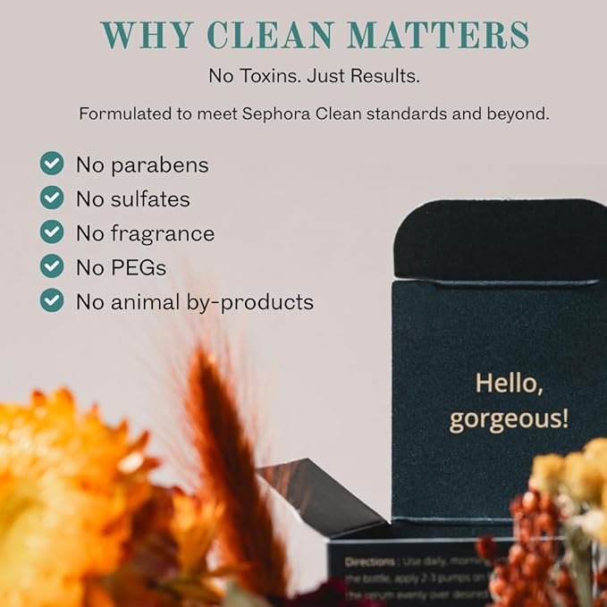 - 🌿 Clean, Clinical & Conscious. Formulated with clean, science-backed ingredients—no parabens, sulfates, synthetic fragrance, or toxins. Vegan. Cruelty-free. EWG-conscious.