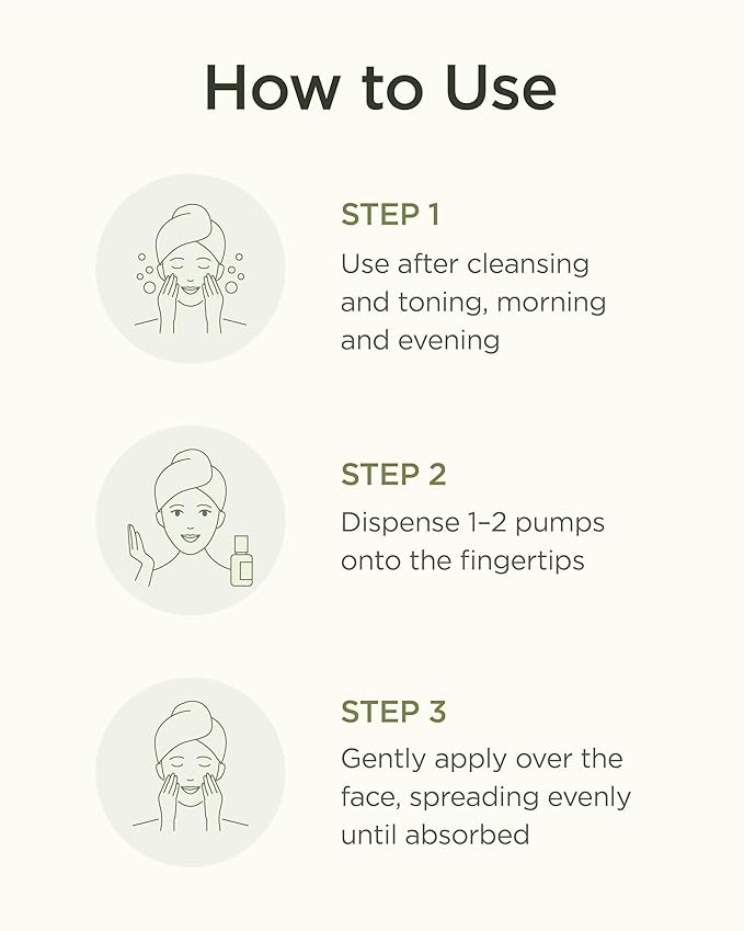 • HOW TO USE – Apply 1–2 pumps after cleansing and toning, both morning and evening. Gently spread over the face until fully absorbed. Follow with moisturizer or sunscreen during the day for best results.