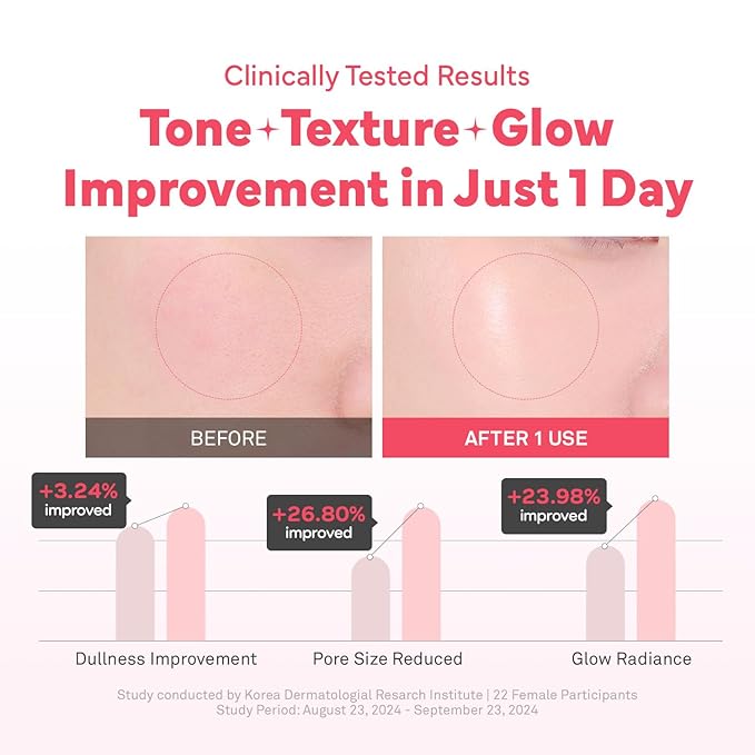 • TRIPLE SKIN TONE IMPROVEMENT (1) Reduces dullness by +3.2% (2) Shrinks pore size by +26.8% (3) Enhances skin radiance by +23.9%