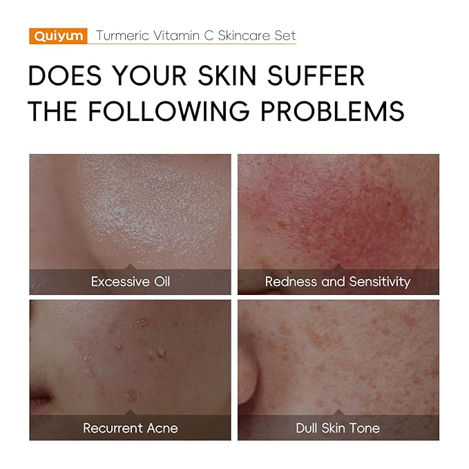 • 【Package Content】QUIYUM Turmeric Vitamin C Skin Care Set includes Serum, Eye Cream, Cream, 2 Type Mud Mask, Soap, Essence Oil.