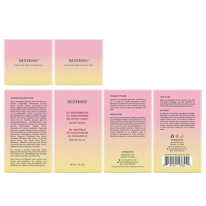 - Dark Spot Corrector for Radiant Skin - Experience the power of the Bestkiss Dark Spot Correcting Glow Serum with 3% Watermelon + 3% Niacinamide + 5% Witch Hazel, designed to target dark spots, age spots, sun spots, melasma, blemishes and even skin tone. This lightweight, gel-based serum combines niacinamide and watermelon to reveal bright, clear, and radiant skin.