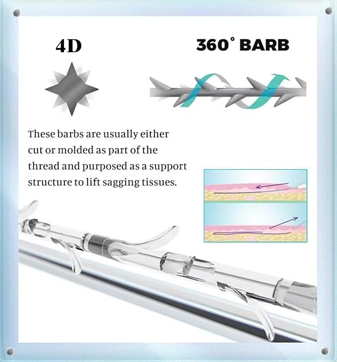 • The sawtooth structure of 360°rotating cutting can effectively lift and fix. Moreover, its pulling force is relatively strong and the effect will be maintained for a long time, which can greatly improve facial sagging
