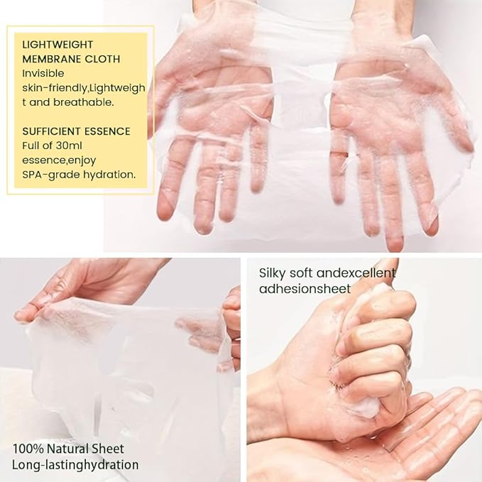 • FACIAL SKINCARE SHEET MASK:This premium women's skin care mask is silky smooth,moisturizing,refreshing and has increased efficacy and adhesion to block evaporation and lock in moisture for a hydrating effect that lasts all day