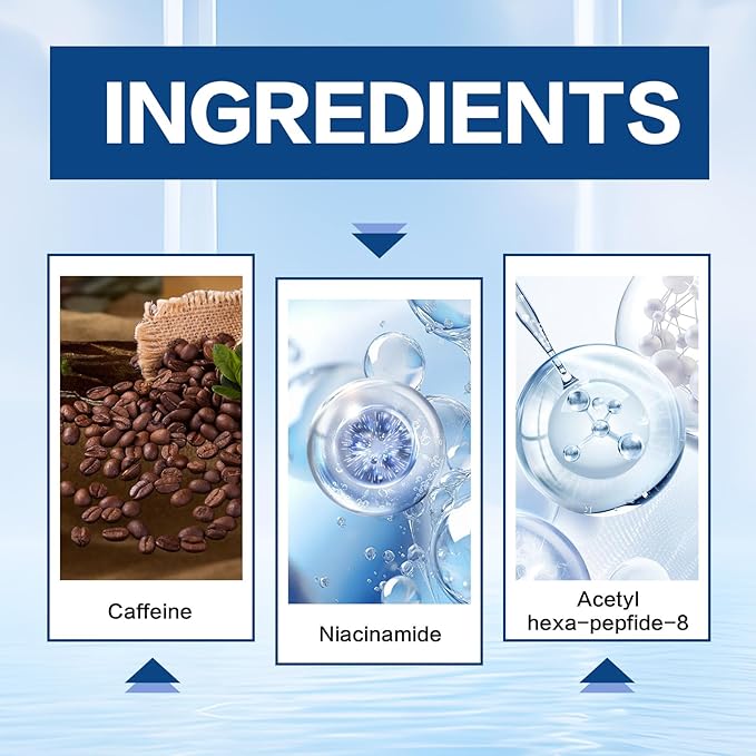 • 【Anti-Aging Powerhouse】Packed with Caffeine, Hyaluronic Acid, and Niacinamide, our serum tackles dark circles, puffiness, and wrinkles for a more youthful look. Use twice daily.