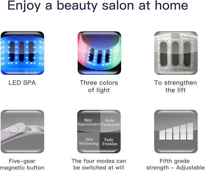 • Intelligent and widely applicable - ergonomically designed to perfectly fit the neck contour, suitable for all necks, with adjustable headband length. This instrument alternately uses three different intensities of light to make the skin glow and effectively lift the neck.