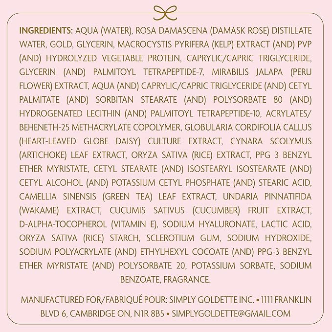 • Special Ingredients : Antioxidants, Gold, Hyaluronic Acid