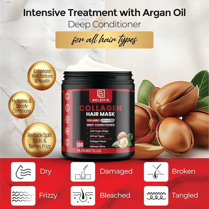 • ❤️COLLAGEN & KERATIN POWER – Revives dry, brittle, over-processed hair by rebuilding strength, elasticity, and shine.