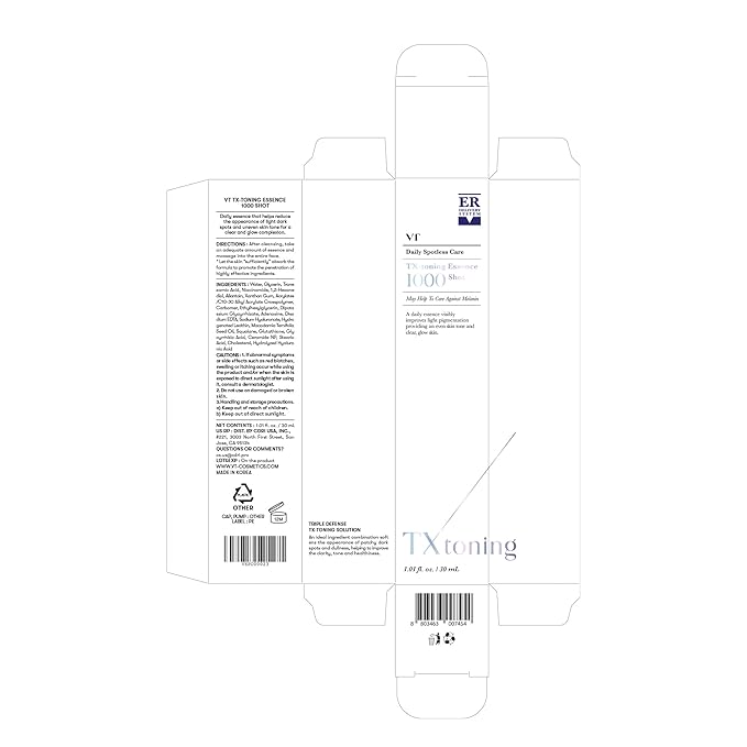 VT COSMETICS TX Toning Essence 1000 Shot, Tranexamic Acid Serum with Niacinamide, Glutathione for Radiant Glass Skin Face, Dark Spots, Acne Scar, Sensitive Skin Care, Korean Skincare, Fragrance-Free