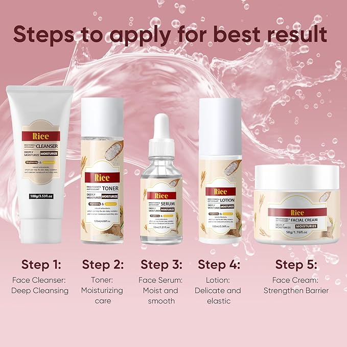 • NOURISHING SKIN: with rice fermentation extracts delivers essential nutrients that work synergistically to penetrate deeply into the skin, enhancing moisture retention. The facial kit designed specifically to deeply moisturize, delay skin oxidation, and keep your skin glowing beautifully.