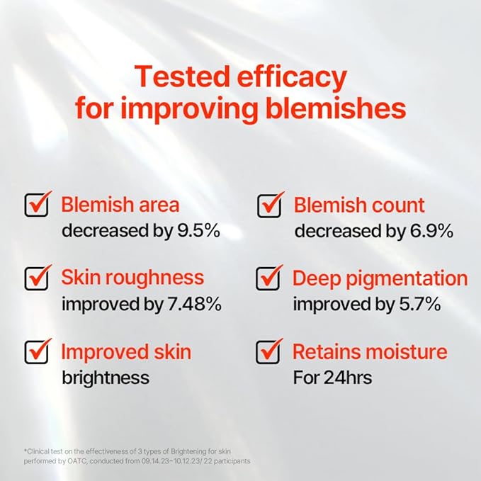 • [Pure Vitamin C] Ascorbic Acid that enhances skin clarity, evens out skin tone, and fights free radicals with its powerful antioxidant properties. It also helps to stimulate collagen production, improving skin firmness.