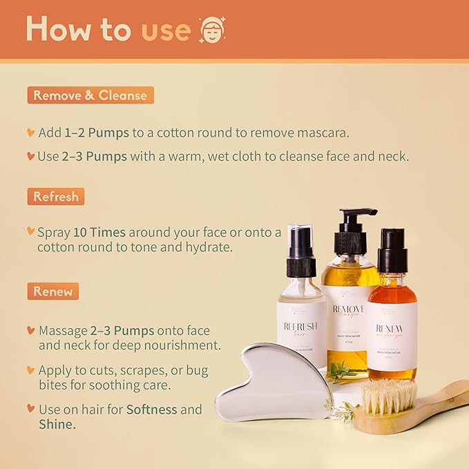 • NOURISH & RESTORE YOUR SKIN: Achieve radiant skin with our natural skin care set, featuring nutrient-rich plant oils that tone, brighten, and heal. Designed for sensitive skin, it’s free from sulfates, parabens, and artificial additives, ensuring a safe and effective skincare routine kit for women.