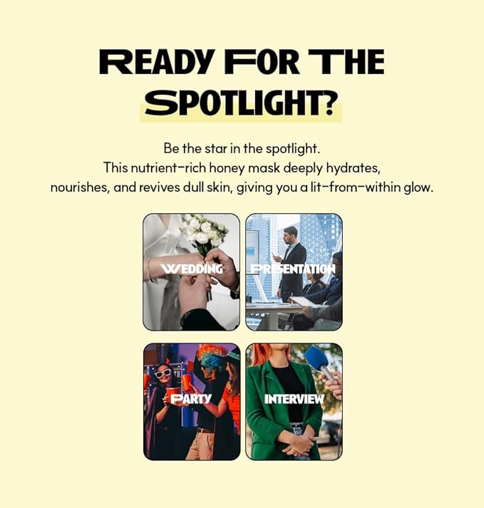 • πŸ’– Instantly Boost Radiance & Hydration : Prepping for special event? This nutrient-rich honey mask deeply hydrates, nourishes, and revives dull skin, giving you a lit-from-within glow.