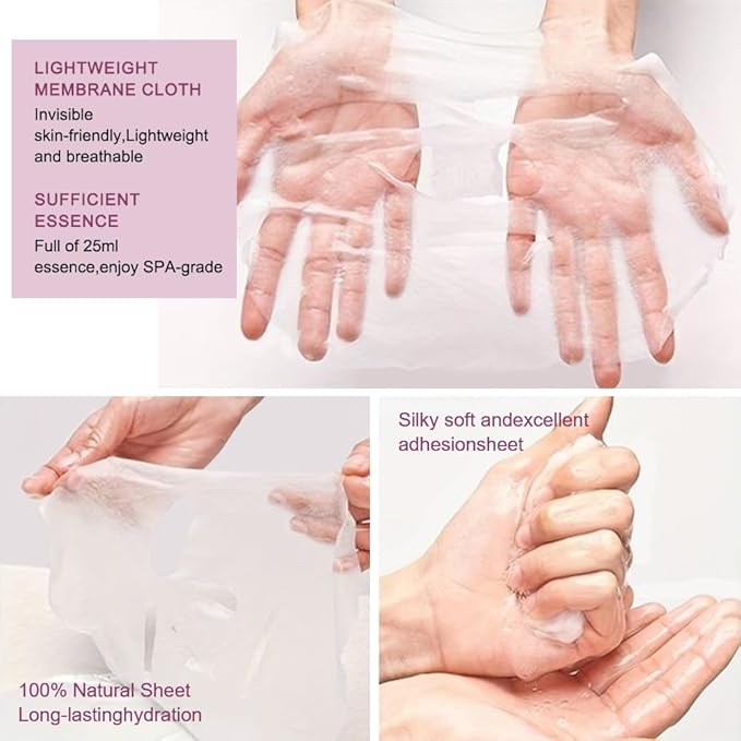 • FACIAL SKINCARE SHEET MASK:This premium women's skin care mask is silky smooth,moisturizing,refreshing and has increased efficacy and adhesion to block evaporation and lock in moisture for a hydrating effect that lasts all day