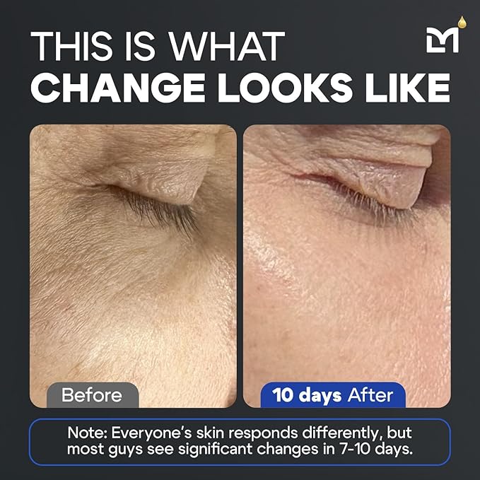 - You'll Notice a Difference Within Days: Within 7-10 days, many guys see improvements in skin firmness and texture, with stubborn lines starting to soften around the eyes and forehead; Keep in mind that results can vary based on your age, skin, and lifestyle