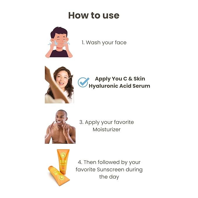 You C & Skin Hyaluronic Acid Serum for Face & Neck for Men & Women - Intense Hydration, Boosts Skin Elasticity, Repairs Skin Barrier