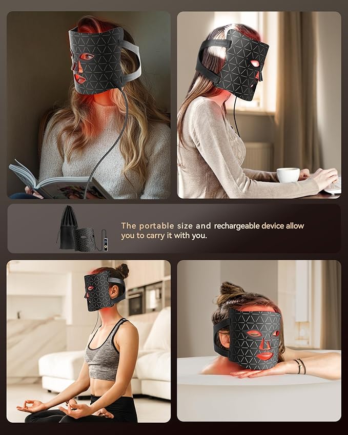 • ❤️ How to Use Red Light Therapy Regularly: For best results, relax and lie down for 10 minutes during each session. The mask is designed to fit all face shapes, allowing you to enjoy red light therapy at home or on the go.
