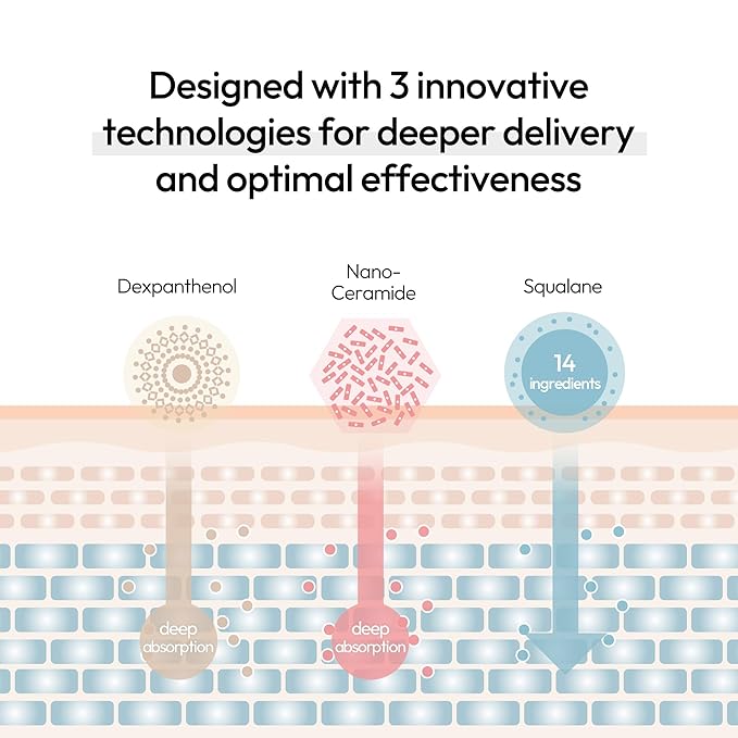 • Advanced Nano Ceramide Technology – Breaks ceramides into ultra-fine particles for superior penetration, strengthening the skin barrier and locking in moisture more effectively