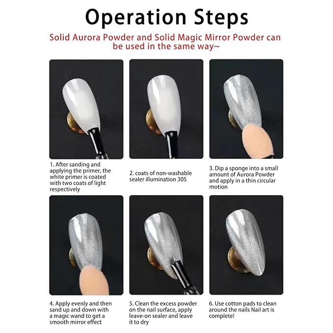 • Effective Nail Chrome:Chrome powder for nails has a mirror effect, which gives the surface of the nail a mirror-like reflection.Nail chrome powder can give a beautiful visual effect to your nails, making them look more beautiful and more fashionable