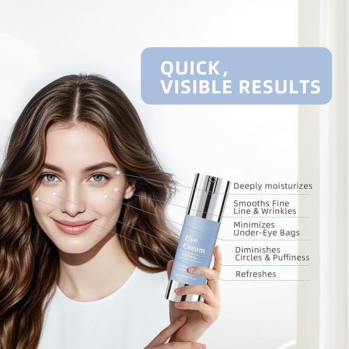 • 【Anti-aging Eye Care】This retinol eye cream is significantly dense, smooth and lifts the delicate skin around the eyes, maximizing the diffusion of light and targeting puffiness, dark circles, fine lines and wrinkles.