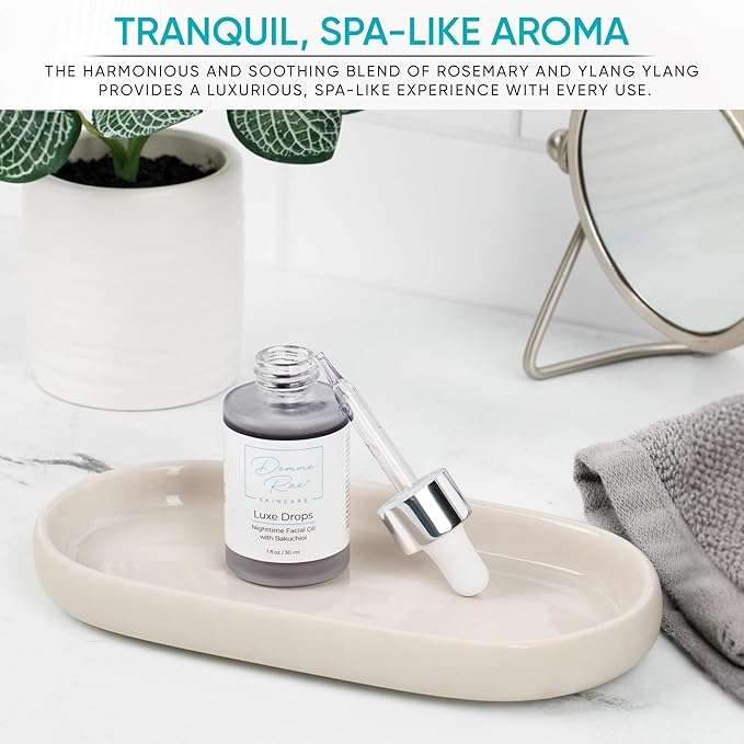 - Spa-Like Scent - A harmonious and soothing blend of Rosemary and Ylang Ylang make this the perfect night oil for face. Not only is Luxe Drops an amazing facial oil moisturizer, it provides relaxing aromatherapy for your night time skin care routine.