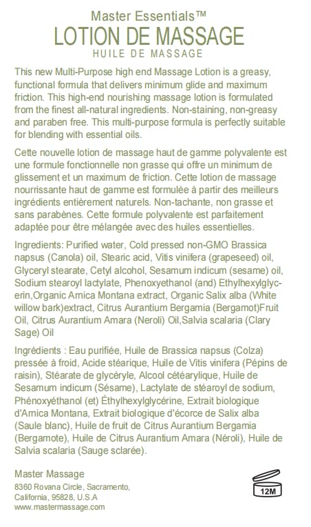 Master Massage Organic Massage Lotion (Pack of 1) - 8 fl oz, Skin-Nourishing Formula for Relaxation, Ideal for Massage Therapy and Home Use