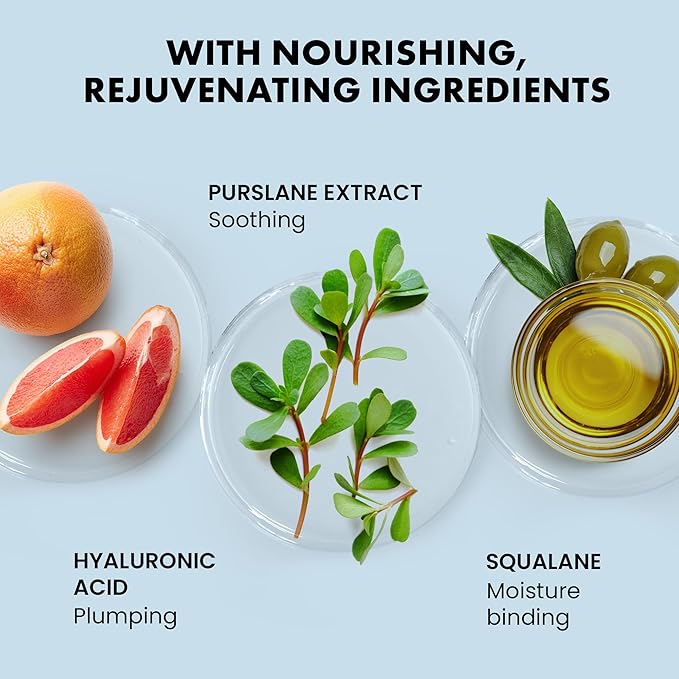- Special Ingredients : 💪 𝗣𝗢𝗪𝗘𝗥𝗙𝗨𝗟 𝗣𝗟𝗨𝗠𝗣𝗘𝗥𝗦 + 🛡️ 𝗦𝗞𝗜𝗡 𝗕𝗔𝗥𝗥𝗜𝗘𝗥 𝗦𝗨𝗣𝗣𝗢𝗥𝗧: Hyaluronic acid (locks in moisture, boosts anti-aging collagen, and fills fine lines and crow’s feet), purslane (soothes inflammation and works to plump skin), squalane (repairs skin barrier and boosts suppleness), oat extract (reduces puffiness). 💪 𝗣𝗢𝗪𝗘𝗥𝗙𝗨𝗟 𝗣𝗟𝗨𝗠𝗣𝗘𝗥𝗦 + 🛡️ 𝗦𝗞𝗜𝗡 𝗕𝗔𝗥𝗥𝗜𝗘𝗥 𝗦𝗨𝗣𝗣𝗢𝗥𝗧: Hyaluronic acid (locks in moisture, boosts anti-aging collagen, and fills fine lines and crow’s feet), purslane (soothes inflammation and works to plump skin), squalane (… See more