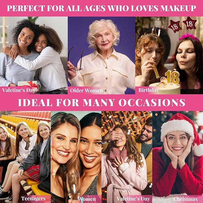 - [Ideal for many occasions] This makeup kit is convenient to carry and Ideal for send as gift on Christmas, birthday, Valentine’s day, mother’s day, for girls, women and teenagers. Suit for no matter makeup beginner or MUAs. We hope you will like this beautiful set, but if in the unlikely event you're not completely satisfied with our product, please feel free to tell and we will make a solution for you.